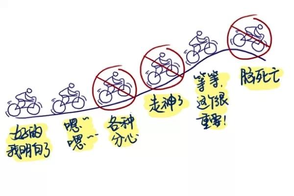 在吸引大象注意力时,有许多视觉化和触觉化的方式是骑象人所忽略的,包括了:视觉工具和幽默的语言。许多教学者认为视觉的工具是视频,其实这只是其中的一小部分,笔者现在用自行车的案例结合视觉来演示“学习者注意力变化的过程”,下图: